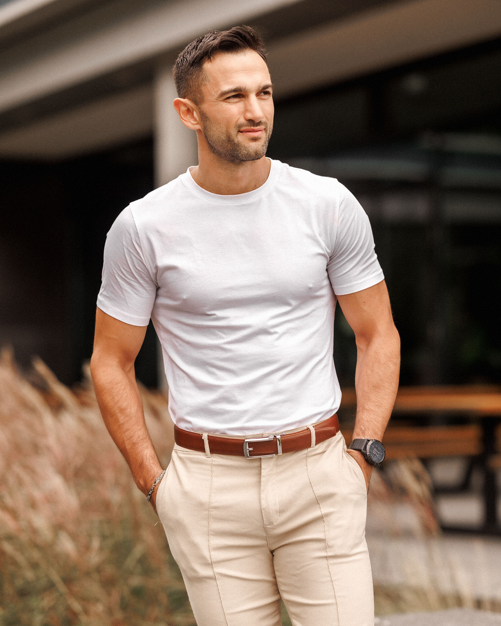 Oavsett om du sitter, står eller rör dig – även vid mer formella tillfällen – säkerställer den steglösa justeringen maximal komfort utan irriterande bälteshål.